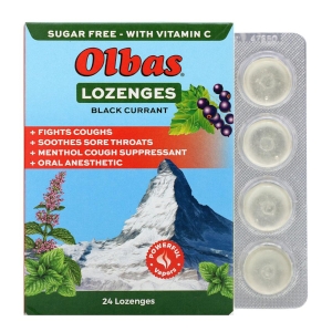 Olbas Sugar-Free Lozenges — gives you maximum strength cough suppressant action that also makes your nasal passages feel clearer. These tasty lozenges help you fight coughs due to minor throat and bronchial irritation that often occurs when you have a cold, or when you inhale an irritant, like smoke or someone's offensive perfume or cologne. They also have a natural anesthetic action that provides instant, cool, soothing relief for a sore throat. Take one and breathe in deeply... you will notice almost immediately how the powerful, cooling vapors give you an intense feeling of increased airflow in your lungs and sinuses! It features a pleasant-tasting Black Currant flavor, combined with soothing Menthol, Eucalyptus and Vitamin C — a key immune system nutrient and a potent free-radical fighter. Olbas Lozenges are sweetened with ISOMALT, a natural