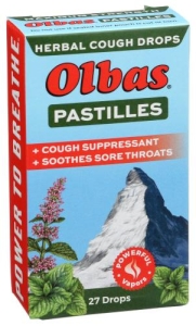 Olbas Pastilles — are maximum strength cough suppressant lozenges that have a powerful vapor action. They provide instant, cool soothing relief for sore throats and help you fight coughs. Powerful, cooling vapors help to make your nasal passages feel clearer, too! These extra-strong lozenges help you fight coughs due to minor throat and bronchial irritation that often occurs when you have a cold, or when you inhale an irritant, like smoke. They also have a natural anesthetic action that provides instant, cool, soothing relief for a sore throat. It features a natural formula compounded from soothing herbs and chlorophyll, which gives Olbas Pastilles their luscious green color — and helps freshen your breath, too! These long lasting lozenges are as powerful as they are soothing. The strength and effectiveness of these cough drops is extraordinary!